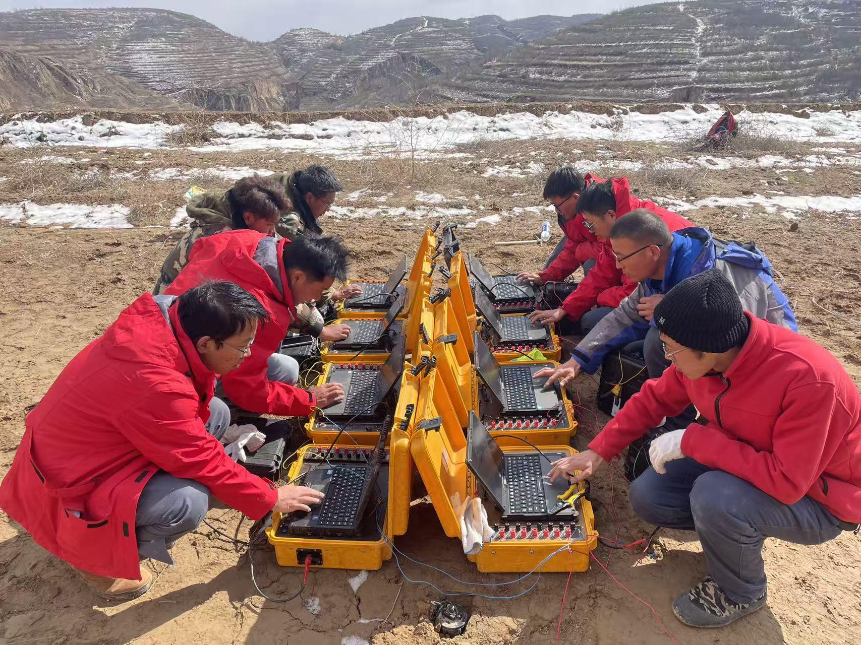 面對項目難題,黨支部深入剖析根源,打出系列“組合拳”:強化作風(fēng)建設(shè),開展黨員承諾踐諾,在項目駐地組織專題宣講,激勵黨員勇挑重擔(dān);創(chuàng)新工作方法,將接收端搬站模式由橫向滾動調(diào)整為縱向平移,大幅縮短設(shè)備和線路搬遷時間,有效增加測點數(shù)量;優(yōu)化發(fā)射-接收模式,采用發(fā)射端循環(huán)發(fā)射、接收端即時采集模式,顯著提升工作效率。在黨員帶領(lǐng)下,項目組實行“白天工作、晚上復(fù)盤”機制,科學(xué)規(guī)劃任務(wù)進度。經(jīng)過連續(xù)奮戰(zhàn),累計完成廣域電磁法物理點6599個,高質(zhì)量通過甲方野外驗收。