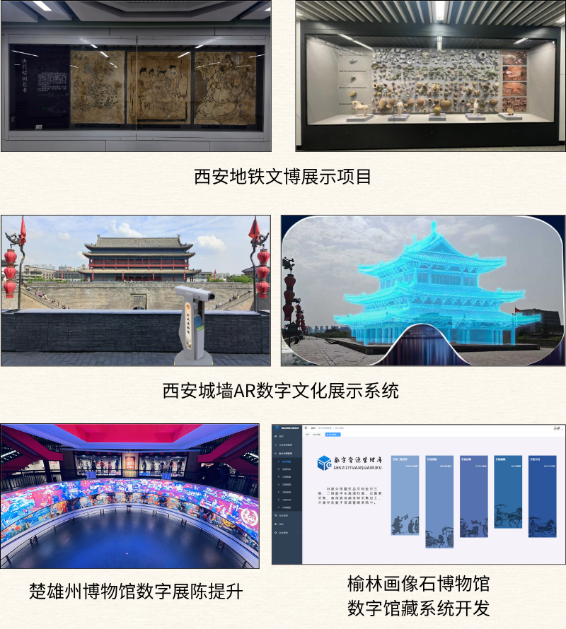 工程公司堅持“產(chǎn)、學(xué)、研”一體化發(fā)展,組建西北有色文化遺產(chǎn)保護與數(shù)字化科技創(chuàng)新中心,持續(xù)推動科研成果轉(zhuǎn)化。先后斬獲實用新型專利6項、發(fā)明專利1項、省級科技成果登記11項,成功開發(fā)文物數(shù)字化保護、數(shù)字化利用、展陳設(shè)計、文創(chuàng)產(chǎn)品研發(fā)、工業(yè)仿真等多元業(yè)務(wù)模式。運用三維激光掃描、高清成像、AR/VR、軟件開發(fā)、數(shù)字內(nèi)容制作等技術(shù),為客戶提供旅游宣傳、景區(qū)互動導(dǎo)覽、館藏數(shù)字信息管理等全方位服務(wù),攜手西安地鐵打造青龍寺、萬壽路等站點“一瞥式”文博展,構(gòu)建安仁坊、西安城墻等多處AR望遠鏡數(shù)字文化展示平臺,開發(fā)榆林市漢畫像石博物館數(shù)字館藏系統(tǒng),以科技為文明傳承注入新活力。