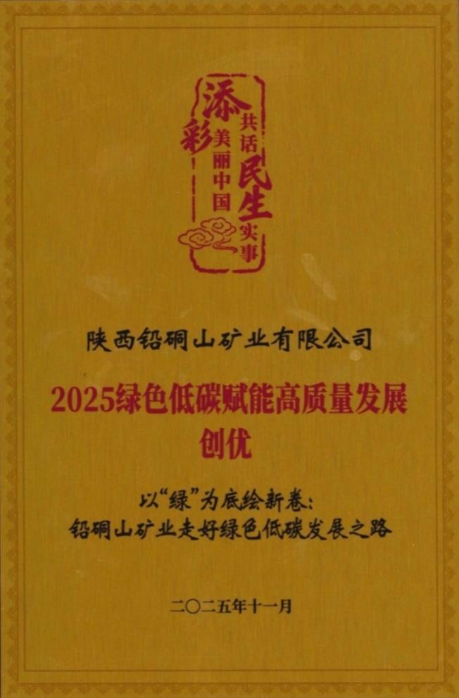 作為一家肩負(fù)著鉛鋅資源保障重任的礦山企業(yè),鉛硐山礦業(yè)公司三十多年來(lái)積極踐行“綠水青山就是金山銀山”理念,將筑牢秦嶺生態(tài)安全屏障作為不可逾越的政治底線。其以“生態(tài)修復(fù)、科技賦能、效益共贏”為核心的綠色轉(zhuǎn)型成果,近日被收錄于全國(guó)《綠色低碳賦能高質(zhì)量發(fā)展實(shí)踐案例匯編(2025)》,并榮獲“2025綠色低碳賦能高質(zhì)量發(fā)展創(chuàng)優(yōu)獎(jiǎng)”,系統(tǒng)展示了傳統(tǒng)礦山綠色升級(jí)的創(chuàng)新實(shí)踐。