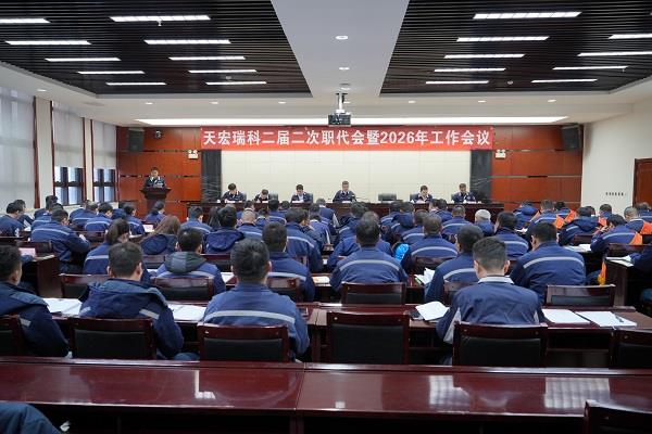 1月27日,天宏瑞科二屆二次職代會暨2026年工作會議在公司行政樓四樓多功能會議室召開。會議傳達(dá)了集團(tuán)公司三屆四次職代會暨2026年工作會議精神和集團(tuán)公司安全環(huán)保會議精神。公司黨委書記、董事長、總經(jīng)理徐巖出席并講話,其他領(lǐng)導(dǎo)班子成員安排部署了2026年分管領(lǐng)域重點(diǎn)工作,黨委副書記、工會主席楊俊斌主持會議。