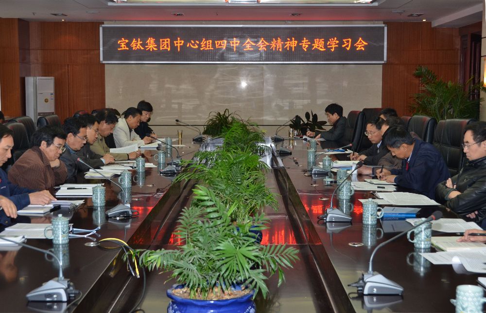 10月28日上午,寶鈦集團(tuán)黨委中心學(xué)習(xí)組成員在公司九樓會(huì)議室,集中學(xué)習(xí)了《中國(guó)共產(chǎn)黨第十八屆中央委員會(huì)第四次全體會(huì)議公報(bào)》、《人民日?qǐng)?bào)》社論《實(shí)現(xiàn)依法治國(guó)的歷史跨越》、中央紀(jì)委書(shū)記王岐山在中紀(jì)委第十八屆四次全會(huì)上的講話(huà)《治國(guó)必先治黨,治黨務(wù)必從嚴(yán)》等五篇專(zhuān)題文章,深刻領(lǐng)會(huì)了中共中央關(guān)于全面推進(jìn)依法治國(guó),建設(shè)中國(guó)特色社會(huì)主義法治體系,建設(shè)社會(huì)主義法治國(guó)家的精神。學(xué)習(xí)會(huì)由寶鈦集團(tuán)黨委書(shū)記王文生主持,寶鈦集團(tuán)領(lǐng)導(dǎo)班子成員及部分副總工程師、黨委部門(mén)負(fù)責(zé)人參加了學(xué)習(xí)會(huì)。