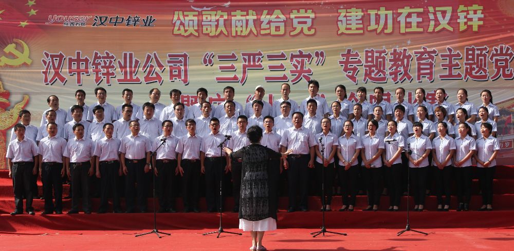 7月1日上午,漢中鋅業(yè)公司“三嚴(yán)三實(shí)”專題教育主題黨日活動(dòng)暨慶“七一”合唱比賽在職工活動(dòng)中心隆重上演。來(lái)自公司各單位的15支合唱隊(duì)共計(jì)1000余人歡聚一堂,一展歌喉,共慶黨的生日。大家用一曲曲嘹亮的紅歌,歌唱黨的光輝歷程,回顧黨的光榮歷史,為建黨94周年獻(xiàn)禮。公司領(lǐng)導(dǎo)劉朝斌、高文杰、侯小強(qiáng)、李永、張健康、王瑜一起參加了活動(dòng)。