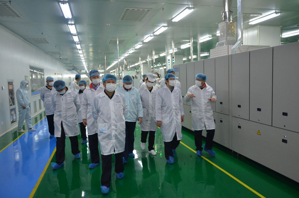 在乘車沿途參觀廠容廠貌并聽(tīng)取范董事長(zhǎng)、田總經(jīng)理關(guān)于項(xiàng)目建設(shè)的基本情況介紹后,岳主任一行深入105電池事業(yè)部調(diào)研參觀。高效電池事業(yè)部是光電科技多晶、單晶電池片的關(guān)鍵工序生產(chǎn)線,擁有德國(guó)、荷蘭等國(guó)際一流的光伏自動(dòng)化全套裝備。岳主任興致勃勃按工序順次仔細(xì)察看,叮囑陪同的新區(qū)和新城領(lǐng)導(dǎo)要全力支持公司做強(qiáng)做大做優(yōu),強(qiáng)調(diào)要高度重視省內(nèi)市場(chǎng)拉動(dòng)作用,在市場(chǎng)好的時(shí)候,一定要抓住機(jī)遇,鼓勵(lì)企業(yè)下決心上產(chǎn)線,加快產(chǎn)能釋放,早日達(dá)產(chǎn)達(dá)效,為新區(qū)經(jīng)濟(jì)社會(huì)發(fā)展做出更大貢獻(xiàn)。