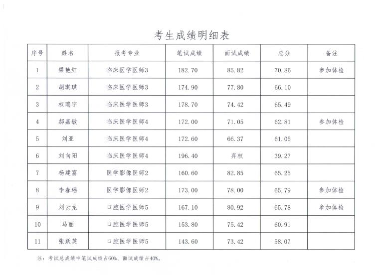 西北有色醫(yī)院2019年省屬事業(yè)單位公開招聘面試環(huán)節(jié)已經(jīng)結(jié)束,依據(jù)《事業(yè)單位人事管理?xiàng)l例》《陜西省事業(yè)單位公開招聘工作人員實(shí)施辦法》及2019年陜西省省屬事業(yè)單位公開招聘工作人員公告要求,考試總成績(jī),按照與崗位招聘計(jì)劃1:1的比例從高分到低分確定參加體檢人員。現(xiàn)將有關(guān)事項(xiàng)公告如下: