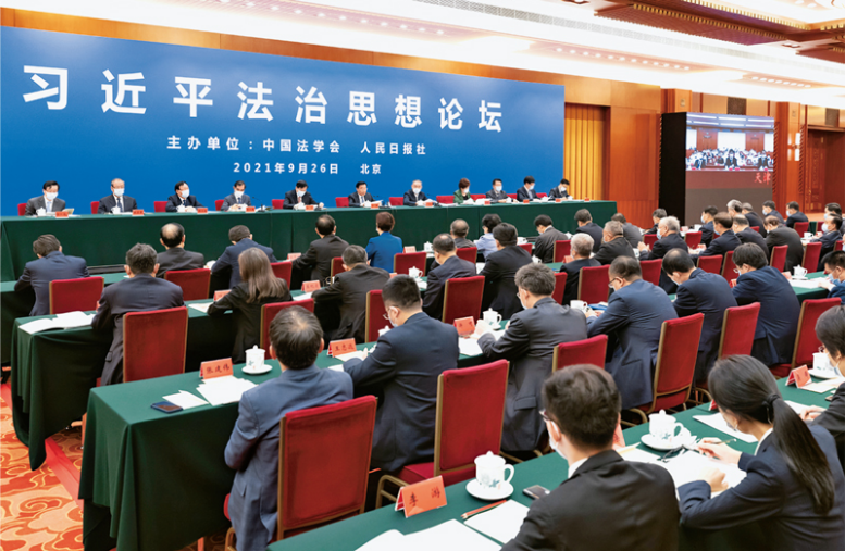 2021年9月26日,由中國法學(xué)會和人民日報社聯(lián)合主辦的習(xí)近平法治思想論壇在京舉行。論壇以“堅定不移走中國特色社會主義法治道路,為全面建成社會主義現(xiàn)代化強(qiáng)國而努力奮斗”為主題,旨在推動社會各界特別是法學(xué)法律界認(rèn)真學(xué)習(xí)、深入研究、扎實宣傳習(xí)近平法治思想,自覺用習(xí)近平法治思想武裝頭腦、指導(dǎo)實踐、推動工作,譜寫新時代全面依法治國新篇章?! 睹裰髋c法制》社記者 戎珊/攝