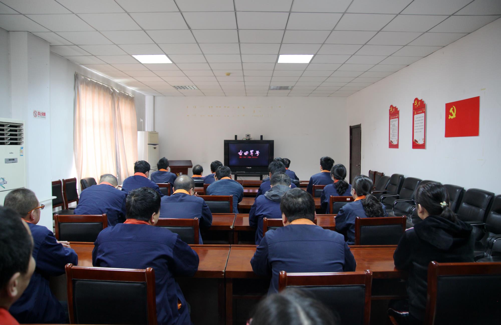 為慶祝中國共產(chǎn)黨成立100周年,深入學習貫徹黨史學習教育動員大會精神,推動黨史學習教育深入人心,促進大家堅定理想信念,激發(fā)愛黨愛國情懷,4月26日下午,天宏硅業(yè)黨委組織在家領(lǐng)導班子成員、副總工程師、中層正副職干部、各黨支部負責人及黨員代表在公司水氣車間三樓會議室觀看了黨史題材電影《古田軍號》。