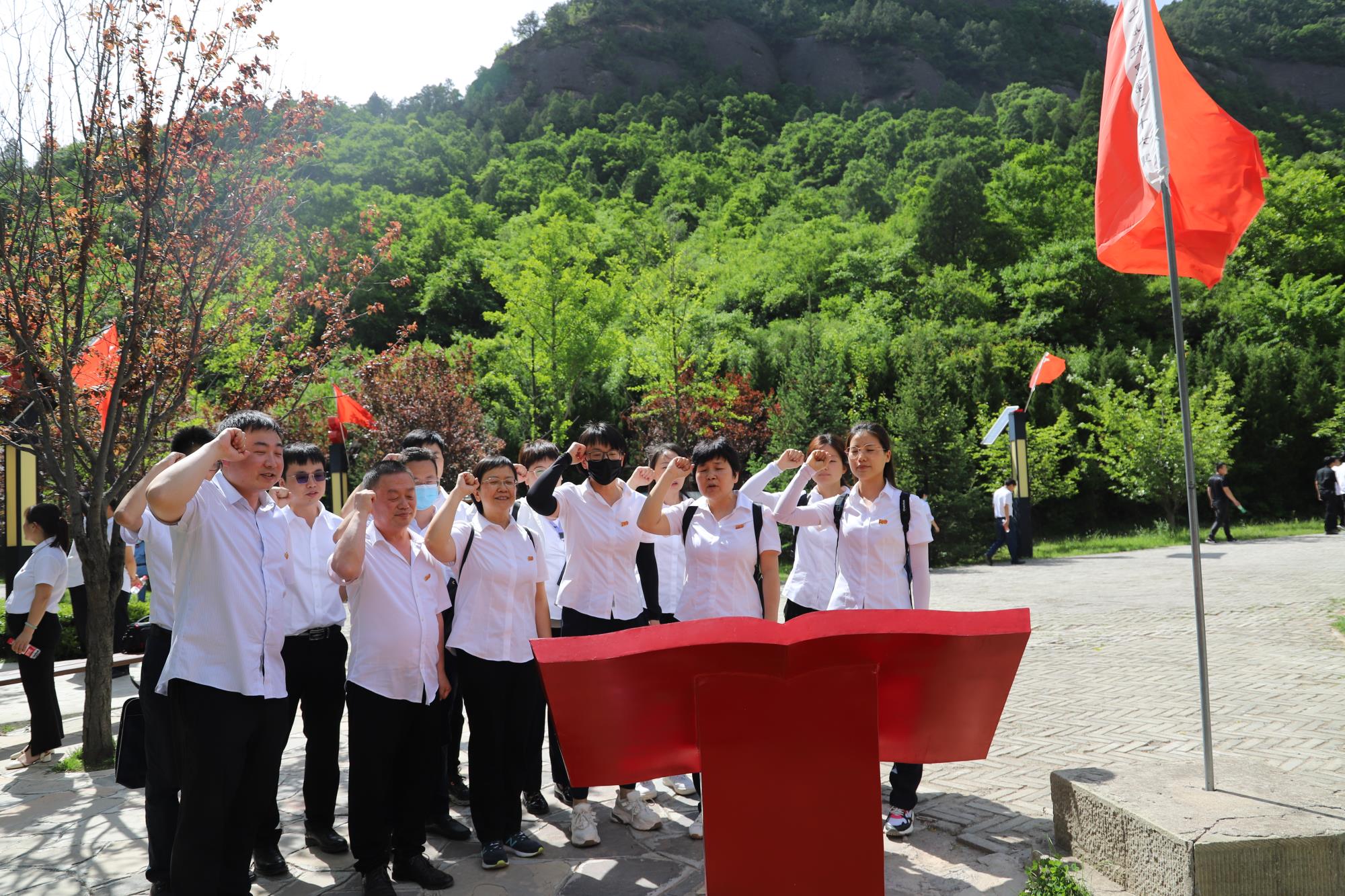 來到薛家寨革命舊址,踏入當(dāng)年英雄流血捍衛(wèi)的地方,手撫過猶如斧劈刀削般的峰壁,參觀著曾經(jīng)那群飽含理想奮斗者的棲身之所,這里深溝高壑、雄奇險峻,不禁感嘆革命先輩理想之高,意志之堅,革命之苦。在冶礦集團(tuán)機關(guān)支部書記杜玉娟同志的帶領(lǐng)下,大家重溫入黨誓詞,用錚錚誓言,鐫刻赤誠初心。
