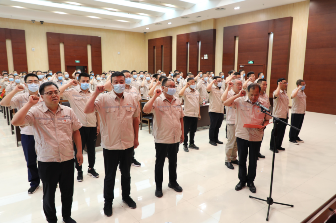 大會在莊嚴(yán)的國歌聲中開幕。公司總經(jīng)理助理、黨委組織部部長楊俊斌作《2021年度黨費(fèi)收繳、使用和管理情況及黨建工作經(jīng)費(fèi)提支情況的報告》。隨后在公司黨委書記、董事長高曉兵帶領(lǐng)下,預(yù)備黨員面向黨旗莊嚴(yán)宣誓并佩戴黨員徽章,全體參會人員重溫入黨誓詞。