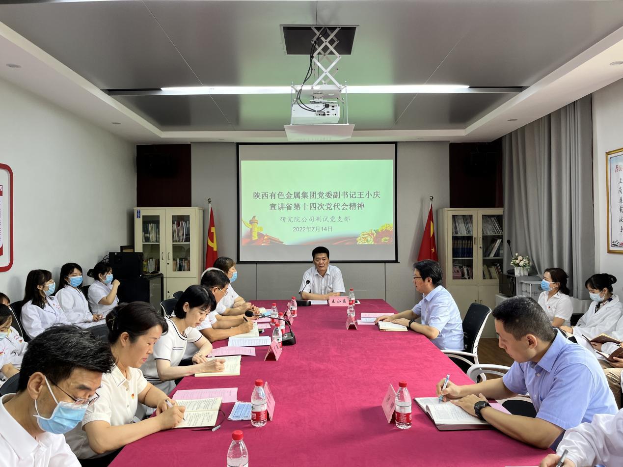 會(huì)上,王小慶從省第十四次黨代會(huì)基本情況、過去五年的工作成效、今后五年的奮斗目標(biāo)等五個(gè)方面,對省第十四次黨代會(huì)精神進(jìn)行了深入解讀。他結(jié)合國內(nèi)外形勢和地勘行業(yè)發(fā)展現(xiàn)狀,與大家分享了寶貴的經(jīng)驗(yàn),鼓勵(lì)大家共謀企業(yè)高質(zhì)量發(fā)展之路。他指出,一是要加強(qiáng)政治理論學(xué)習(xí),推進(jìn)黨建工作與科研生產(chǎn)融合發(fā)展,發(fā)揮好黨支部戰(zhàn)斗堡壘作用和黨員領(lǐng)導(dǎo)干部先鋒模范作用;二是要深入貫徹省第十四次黨代會(huì)精神,把學(xué)習(xí)貫徹省黨代會(huì)精神同做好當(dāng)前工作結(jié)合起來,抓好抓實(shí)陜西有色金屬集團(tuán)“高質(zhì)量項(xiàng)目建設(shè)年”各項(xiàng)工作,增強(qiáng)創(chuàng)新發(fā)展意識,充分發(fā)揮研究院公司科研、技術(shù)和人才優(yōu)勢,為下一個(gè)五年發(fā)展作貢獻(xiàn);三是要堅(jiān)決貫徹習(xí)近平總書記重要講話精神,落實(shí)“疫情要防住、經(jīng)濟(jì)要穩(wěn)住、發(fā)展要安全”要求,立足陜西有色金屬集團(tuán)、兩集團(tuán)穩(wěn)增長和脫困扭虧增盈工作方案,堅(jiān)定信心、快干實(shí)干,確保順利完成全年目標(biāo)任務(wù)。