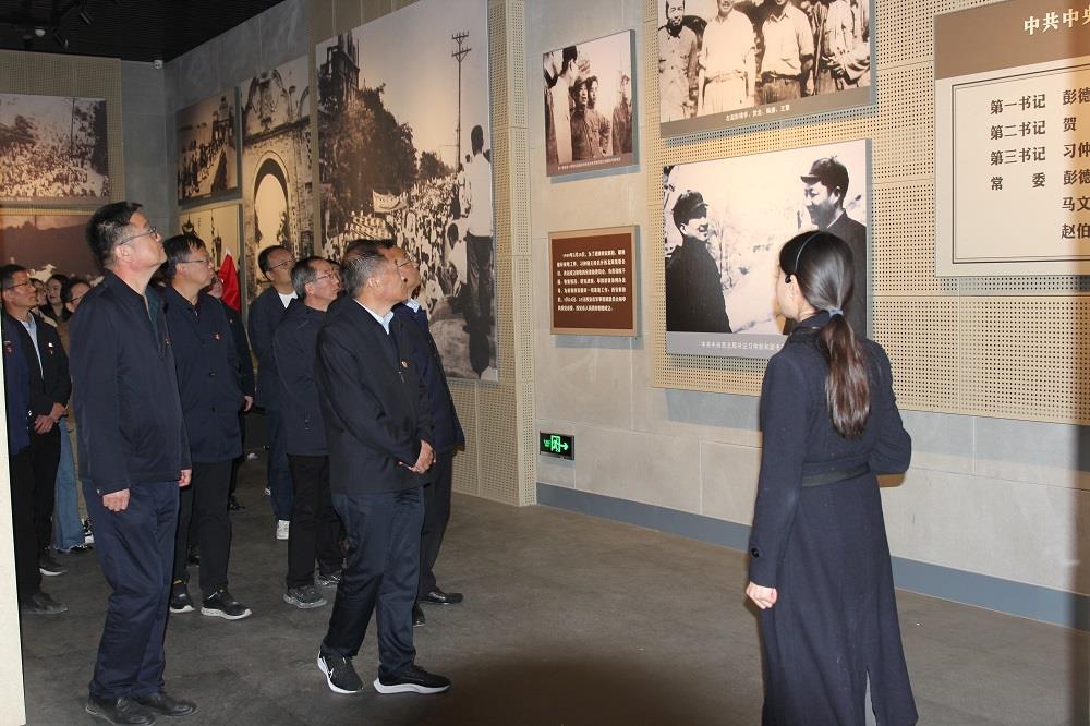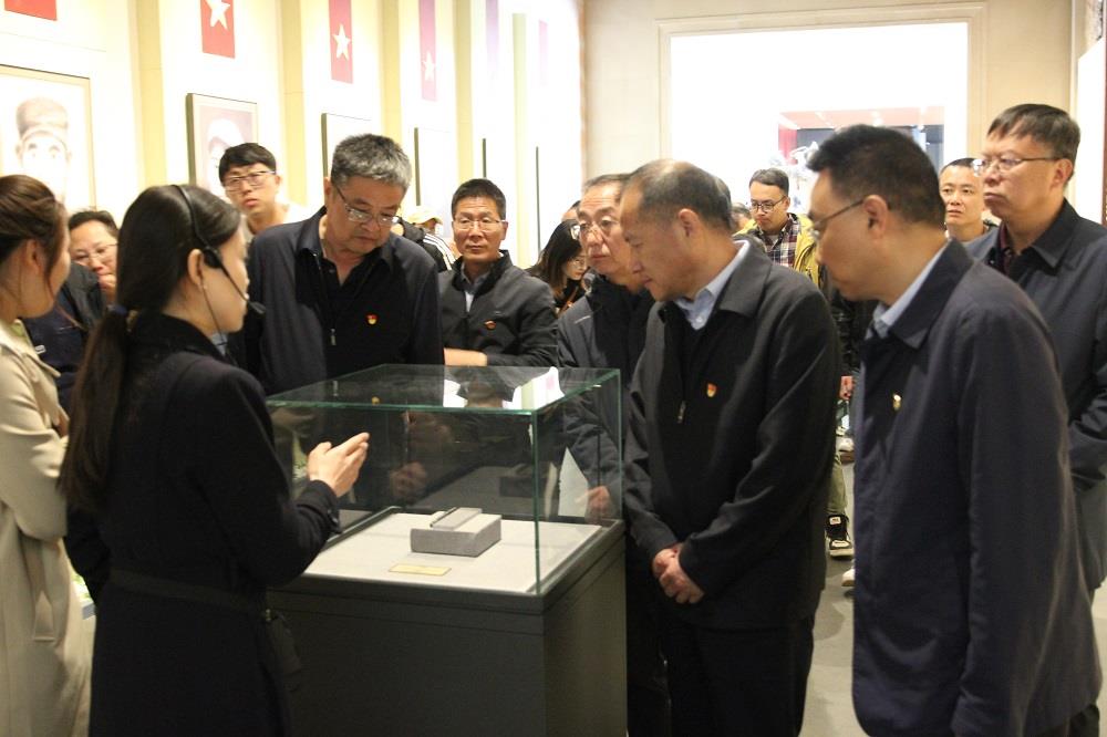 “1949年7月10日,扶眉戰(zhàn)役正式打響。此役徹底扭轉(zhuǎn)了西北戰(zhàn)場上敵強我弱的被動局面,打開了解放軍解放大西北、進軍大西南的戰(zhàn)略通道?!弊哌M扶眉戰(zhàn)役紀念館第二單元“誘敵深入 決戰(zhàn)扶眉”,講解員將扶眉戰(zhàn)役的經(jīng)過娓娓道來。全體黨員干部參觀了烈士紀念館展廳,聆聽英雄感人事跡,觀看文獻資料、實物展出,一件件珍貴的展品,無聲地訴說著一個個感人的瞬間。隨后大家共同瞻仰了烈士墓,為革命烈士敬獻獻花,向長眠于此的英雄們獻上最誠摯的敬意。