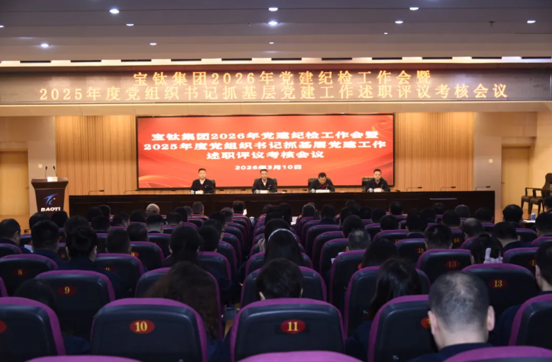 3月10日,寶鈦集團(tuán)2026年黨建紀(jì)檢工作會(huì)暨2025年度黨組織書(shū)記抓基層黨建工作述職評(píng)議考核會(huì)在寶鈦賓館七樓學(xué)術(shù)報(bào)告廳召開(kāi)。寶鈦集團(tuán)黨委書(shū)記、董事長(zhǎng)王儉出席會(huì)議并講話,寶鈦集團(tuán)黨委副書(shū)記、總經(jīng)理陳戰(zhàn)乾主持會(huì)議。