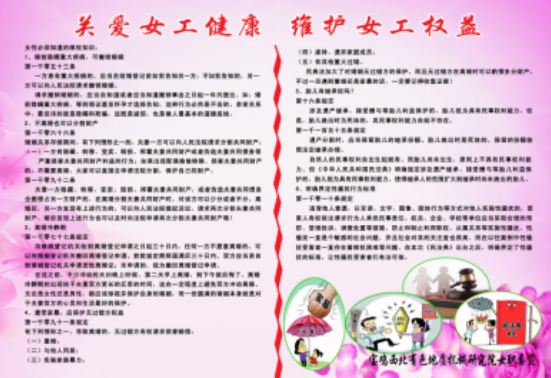 各單位女職委積極宣傳《民法典》《促進(jìn)工作場(chǎng)所性別平等指導(dǎo)手冊(cè)(修訂版)》、《陜西省實(shí)施女職工勞動(dòng)保護(hù)特別規(guī)定》等女職工權(quán)益保護(hù)法律法規(guī),通過(guò)廣播平臺(tái)、櫥窗板報(bào)、張貼標(biāo)語(yǔ)、網(wǎng)絡(luò)平臺(tái)等結(jié)合疫情防控進(jìn)行普法宣傳,推動(dòng)普法活動(dòng)深入基層一線、深入女職工中。