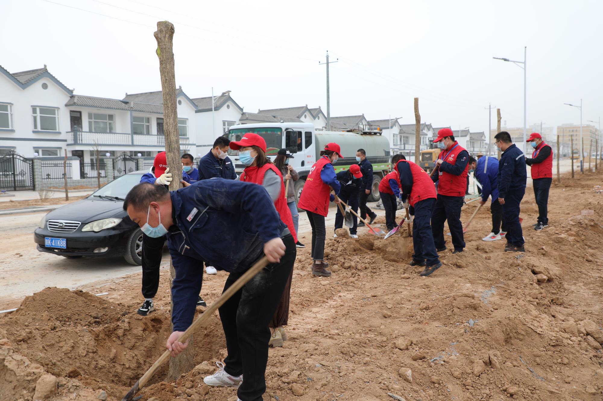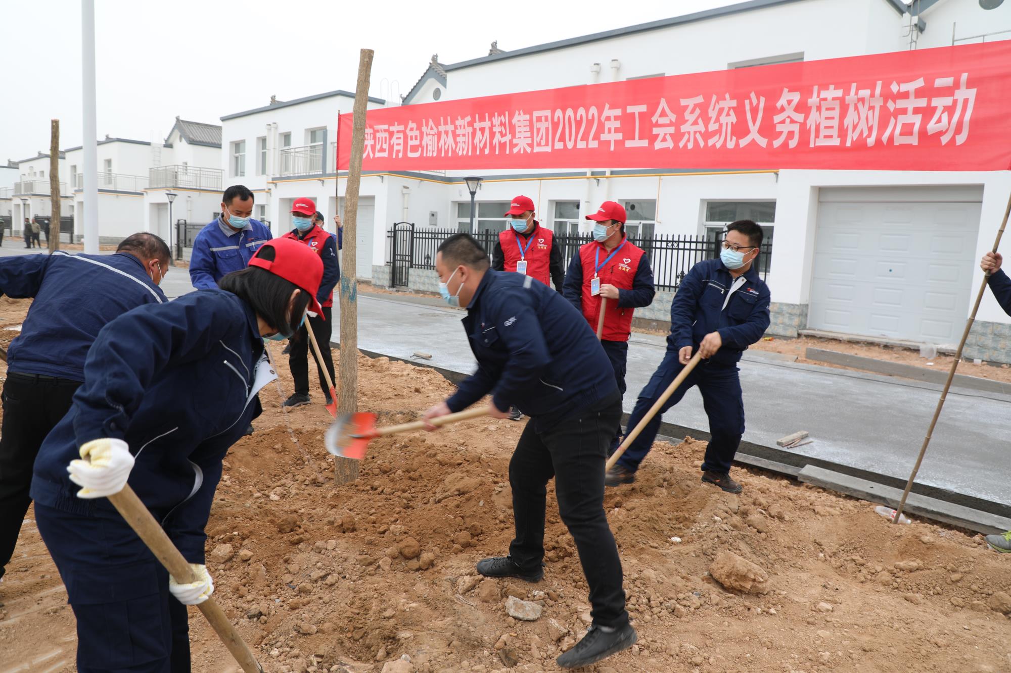 4月11日,按照陜西有色金屬控股集團(tuán)工會(huì)要求,榆林新材料集團(tuán)工會(huì)和后勤服務(wù)公司聯(lián)合組織公司職工、青年志愿者和后勤服務(wù)公司等員工,在新建移民安置區(qū)和新建倒班宿舍區(qū)域內(nèi)開展義務(wù)植樹活動(dòng)。