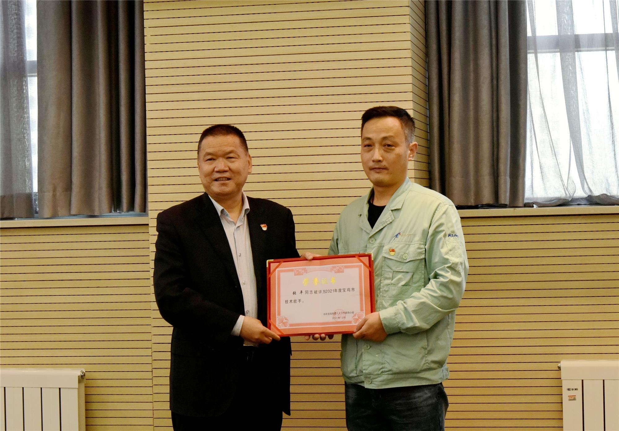 會上,王建超還為榮獲2021年度寶雞市首席技師的肖小紅和寶雞市技術能手的張平頒發(fā)了榮譽證書。