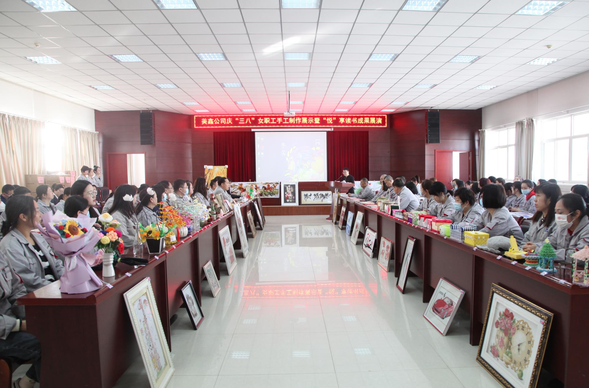 以“巾幗心向黨,巧手繪生活”為主題的美鑫女工手工制作比賽,目的在于倡導(dǎo)環(huán)保理念,號(hào)召?gòu)V大女工以DIY的形式,利用各種材料,親手制作各類手工藝品,將綠色低碳的環(huán)保理念融入生活,將習(xí)總書記提出的“幸??侩p手奮斗”精神貫徹落實(shí)到具體行動(dòng),展現(xiàn)美鑫“半邊天”努力工作、快樂生活的健康形象?!皭偂弊x在于引導(dǎo)女工在工作之余,能夠愛讀書、讀好書、善讀書,堅(jiān)定理想信念,不斷充實(shí)豐富精神世界,獲取知識(shí),提升素質(zhì),從深入學(xué)習(xí)領(lǐng)會(huì)二十大精神出發(fā),以閱讀、思考、研討等方式,分享自己的讀書心得,從多角度展現(xiàn)美鑫女工的自尊自信自強(qiáng)自立,人人爭(zhēng)做家庭美德、職業(yè)道德、社會(huì)公德的傳播者和實(shí)踐者。慶“三八”系列活動(dòng)得到公司女工積極響應(yīng),240余人參賽,參賽作品300余件。作品包含手工藝制品、紙制品、織制品、布制品、塑料制品、竹制品等多種形式,從藝術(shù)性、創(chuàng)意性、美觀性、實(shí)用性、環(huán)保性等角度,以海投海選和評(píng)委投票相結(jié)合的方式,對(duì)作品進(jìn)行了評(píng)選展示,對(duì)讀書分享成果進(jìn)行了視頻和現(xiàn)場(chǎng)展演。