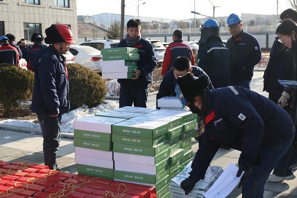 天氣雖然寒冷,但發(fā)放現(xiàn)場氣氛熱烈,職工們臉上洋溢著幸福的微笑,隨處可見你來我往、手提車?yán)ぷ魅藛T配合默契,卸車、搬運、核發(fā),井然有序。沉甸甸的慰問品不僅給帶來了濃濃的新春祝福,也為每位職工心里帶來了滿滿的希望和勁頭。大家表示新的一年一定會將公司給予的關(guān)懷化為工作動力,用實際行動為公司高質(zhì)量發(fā)展作出更多貢獻。