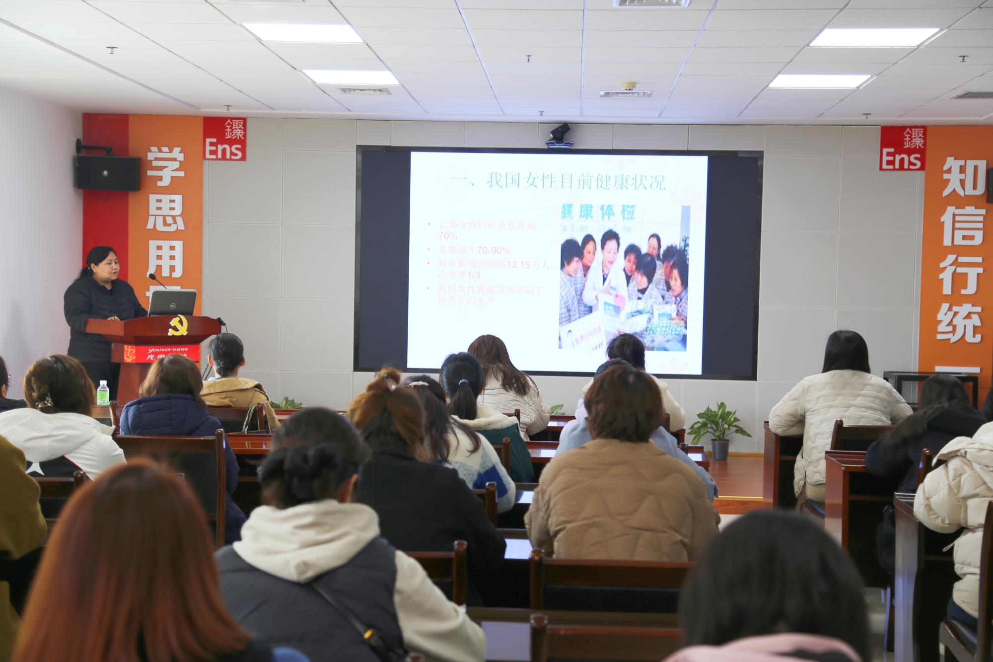當天下午,公司工會邀請華山半導體原職工醫(yī)院副院長穆雅麗為全體女工開展了女性健康知識講座,穆雅麗通過案例分析及現場互動等方式,圍繞女性防癌及心腦血管疾病預防知識等方面進行詳細講解,引導女性同胞們要定期自檢、體檢,加強日常生活中的自我保健。與會人員紛紛表示受益匪淺。