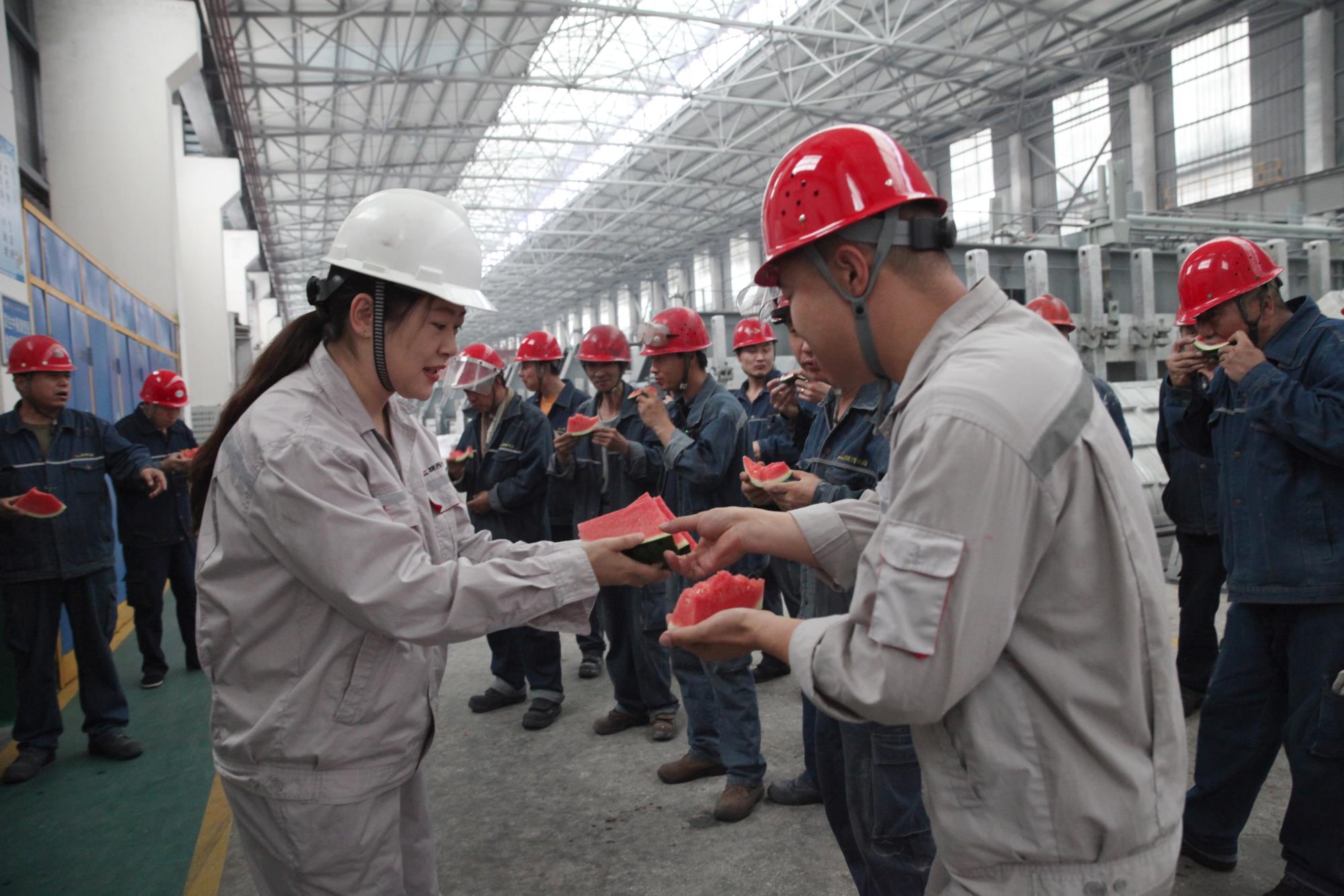 連日來驕陽似火,高溫天氣持續(xù)籠罩,陜西美鑫鋁鎂合金分公司生產(chǎn)一線一派繁忙景象,“奮戰(zhàn)二季度 實(shí)現(xiàn)雙過半”活動正如火如荼的進(jìn)行著。陜西美鑫公司女工委積極響應(yīng)公司黨政號召,6月14日下午,在鋁鎂合金分公司電解一、二車間開展“戰(zhàn)酷暑、保安全 與一線職工肩并肩”夏季送清涼活動,為奮戰(zhàn)在高溫一線的職工送去一絲清涼和一份關(guān)懷。