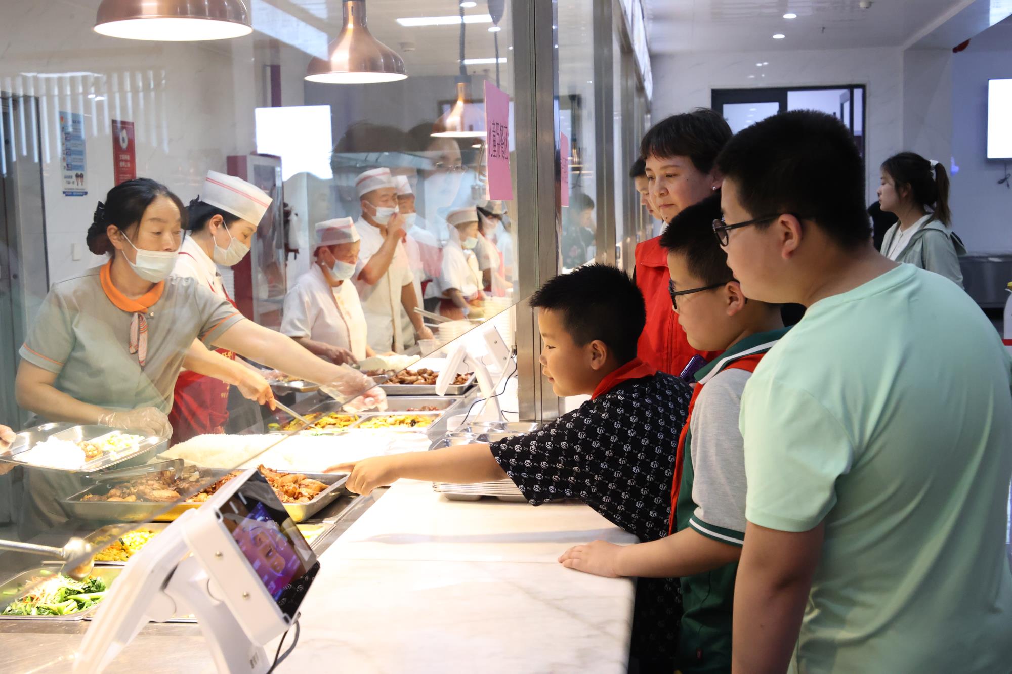職工食堂內(nèi),親子時(shí)光溫馨延續(xù)。孩子們有條不紊地排隊(duì)取餐,與家長(zhǎng)圍坐一堂,共同探討參觀的收獲與感悟。豐富的菜肴和輕松愉快的氛圍讓親子關(guān)系更加融洽,在“心貼心”的交流中,孩子們更真切地理解了父母工作的辛勞與價(jià)值。