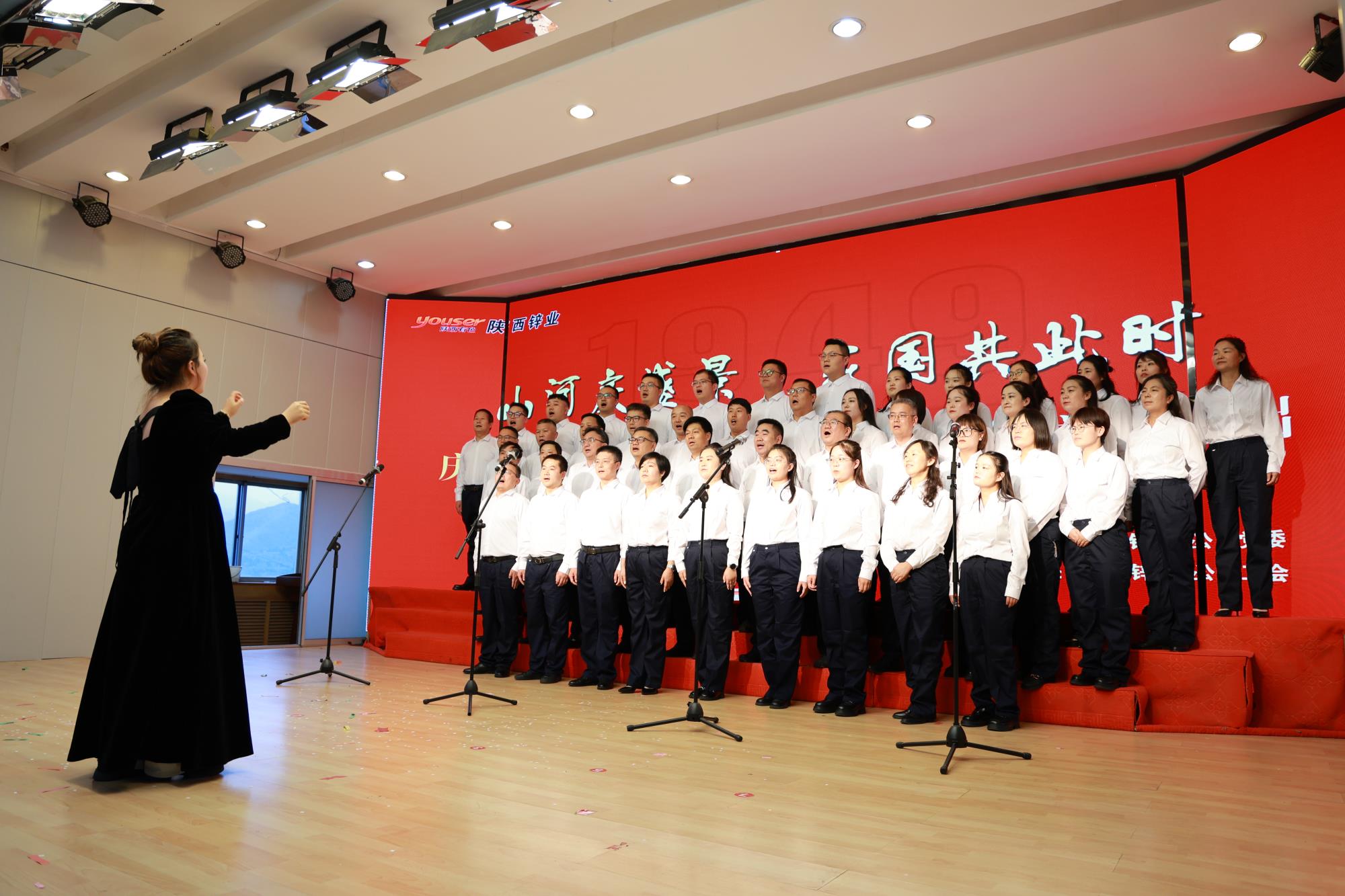 演出最后,公司領(lǐng)導(dǎo)班子成員與機關(guān)聯(lián)合分會等五十人組成的合唱團(tuán)壓軸登場,共同高歌《沒有共產(chǎn)黨就沒有新中國》和《歌唱祖國》。當(dāng)熟悉的旋律響起,全場職工自發(fā)肅立齊聲合唱,嘹亮的歌聲響徹全場,將整場演出的熱烈氛圍推向最高潮,也為此次文藝匯演劃上了一個圓滿的句號。