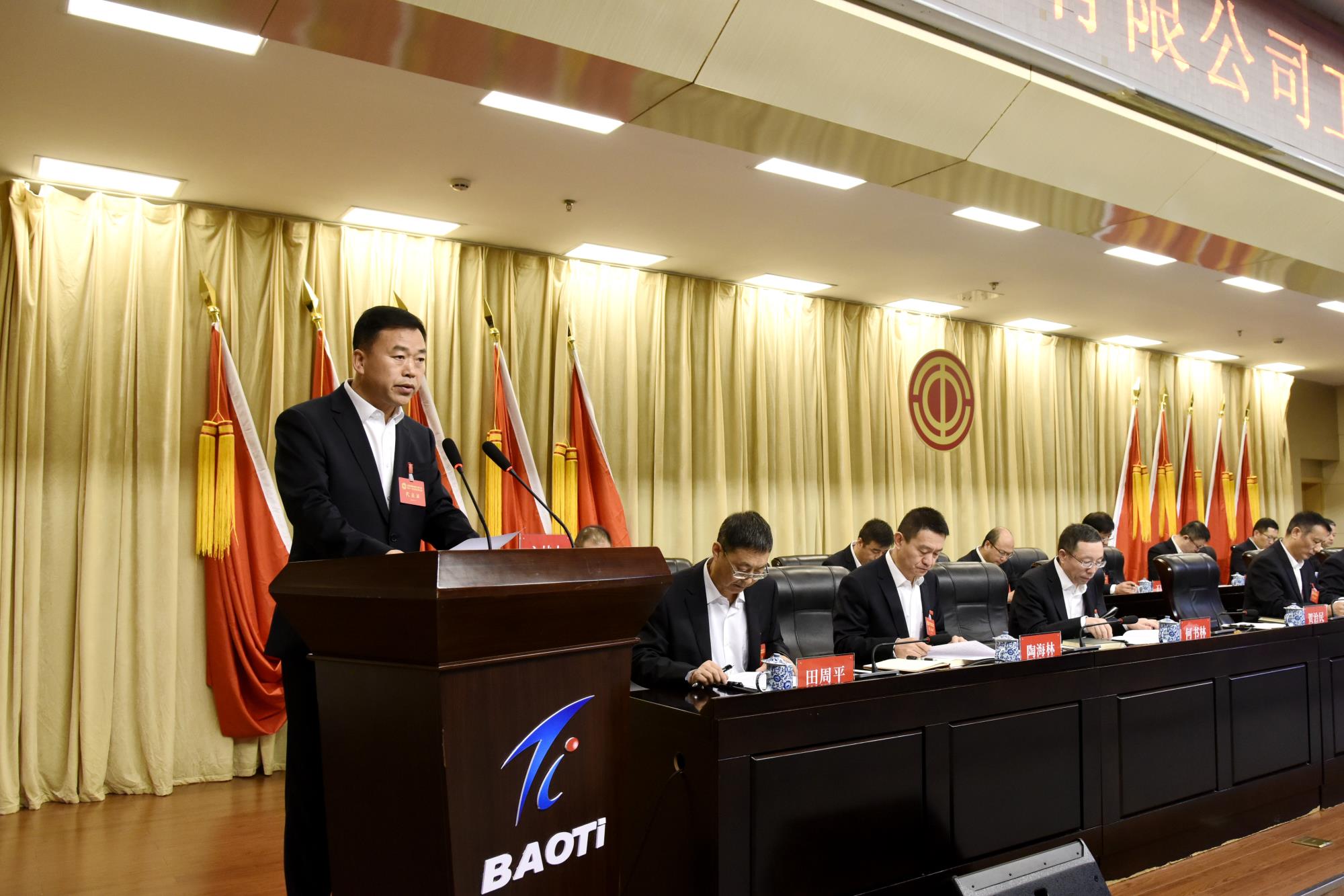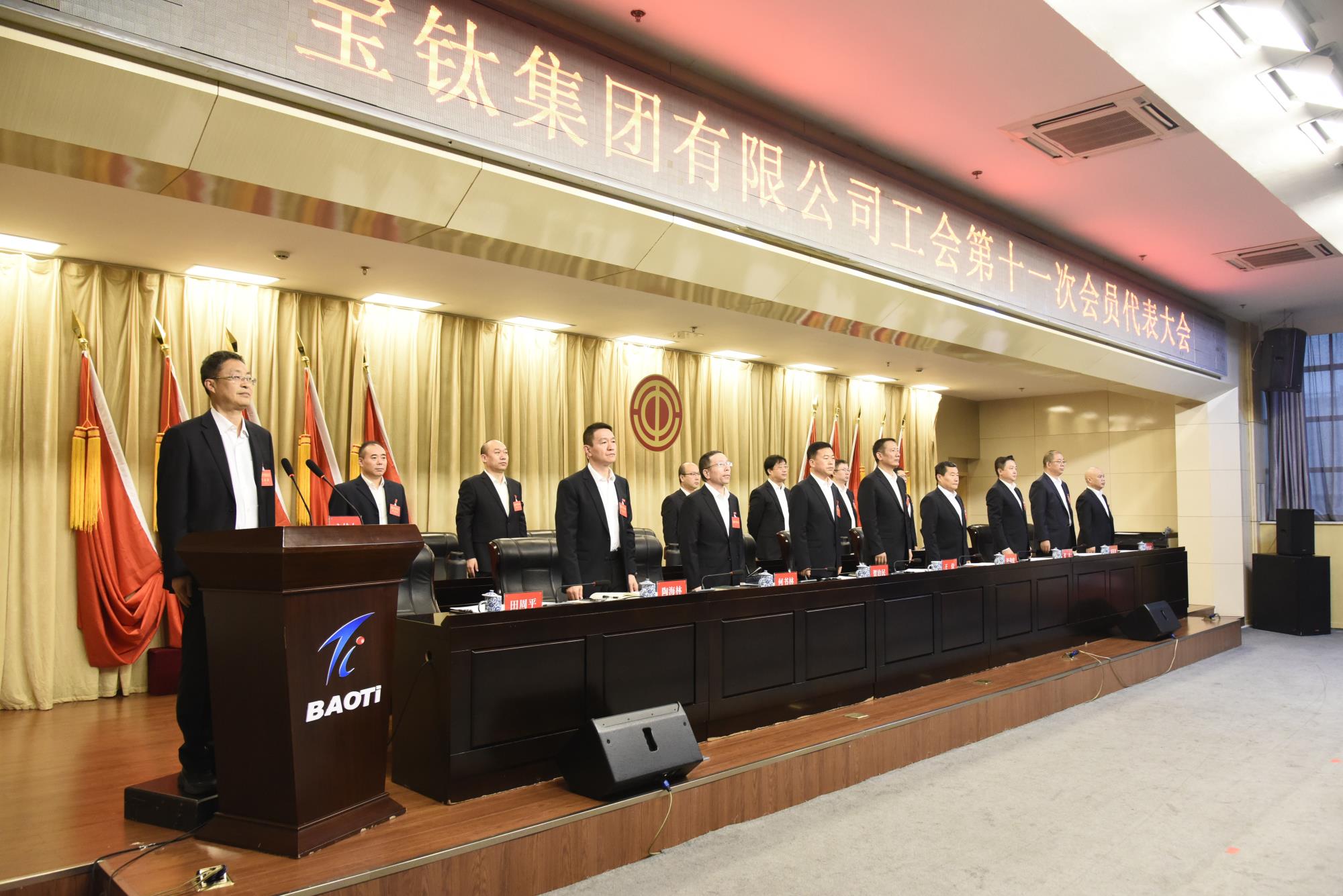上午8時30分,大會在莊嚴(yán)的國歌聲中開幕。王儉、陳戰(zhàn)乾、賀治民、張凡、何書林、鄧振海、陶海林、耿愛武等寶鈦集團(tuán)領(lǐng)導(dǎo)和大會主席團(tuán)成員在主席臺就座。陜西有色金屬集團(tuán)黨委第三輪巡察第一巡察組派員列席大會。