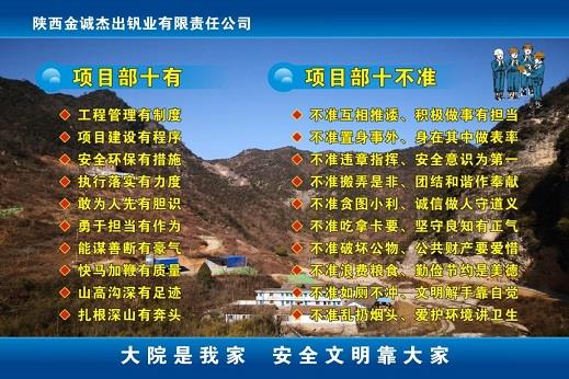 金鉬集團金誠釩業(yè)位于陜西省商洛市山陽縣王閆鎮(zhèn),承載著呂東溝釩礦建設任務,該地區(qū)地理位置偏遠、工作條件艱苦,公司員工發(fā)揚“以企為家、勇于擔當、艱苦奮斗、勤儉節(jié)約”的工作作風,秉承“艱難困苦、玉汝于成”的創(chuàng)業(yè)精神,雖偏遠不忘抓廉潔、雖艱苦不忘強管理,制定了“十有”、“十不準”規(guī)定,自覺踐行講規(guī)矩、知敬畏、存戒懼、守底線的規(guī)矩意識,將教育客體縱向延伸至項目建設一線普通黨員和管理人員,有效落實廉潔宣教“進班子、進部門、進班組、進家庭和上墻面、上桌面、上版面、上網(wǎng)站、上手機”的工作要求,為項目建設順利實施提供了堅強的紀律保障。