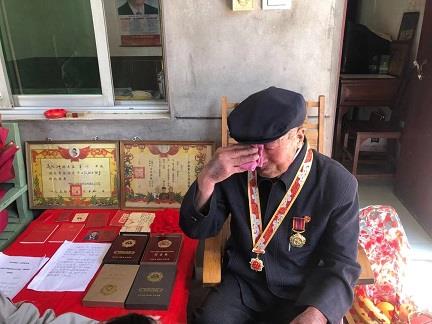馬根周老人,1934年9月出生,1949年6月參軍,1955年6月加入中國共產(chǎn)黨,1957年4月復(fù)員回鄉(xiāng),參加過蘭州戰(zhàn)役、甘南剿匪戰(zhàn)等,先后擔(dān)任村里的生產(chǎn)隊長、會計、民兵連長、村委會委員等,直到65歲時才從村干部的崗位上退了下來?,F(xiàn)已87歲高齡的馬老,雖白發(fā)蒼蒼,臉上布滿皺紋,但精神矍鑠,一提起所經(jīng)歷的那些崢嶸歲月,老人仍記憶猶新。