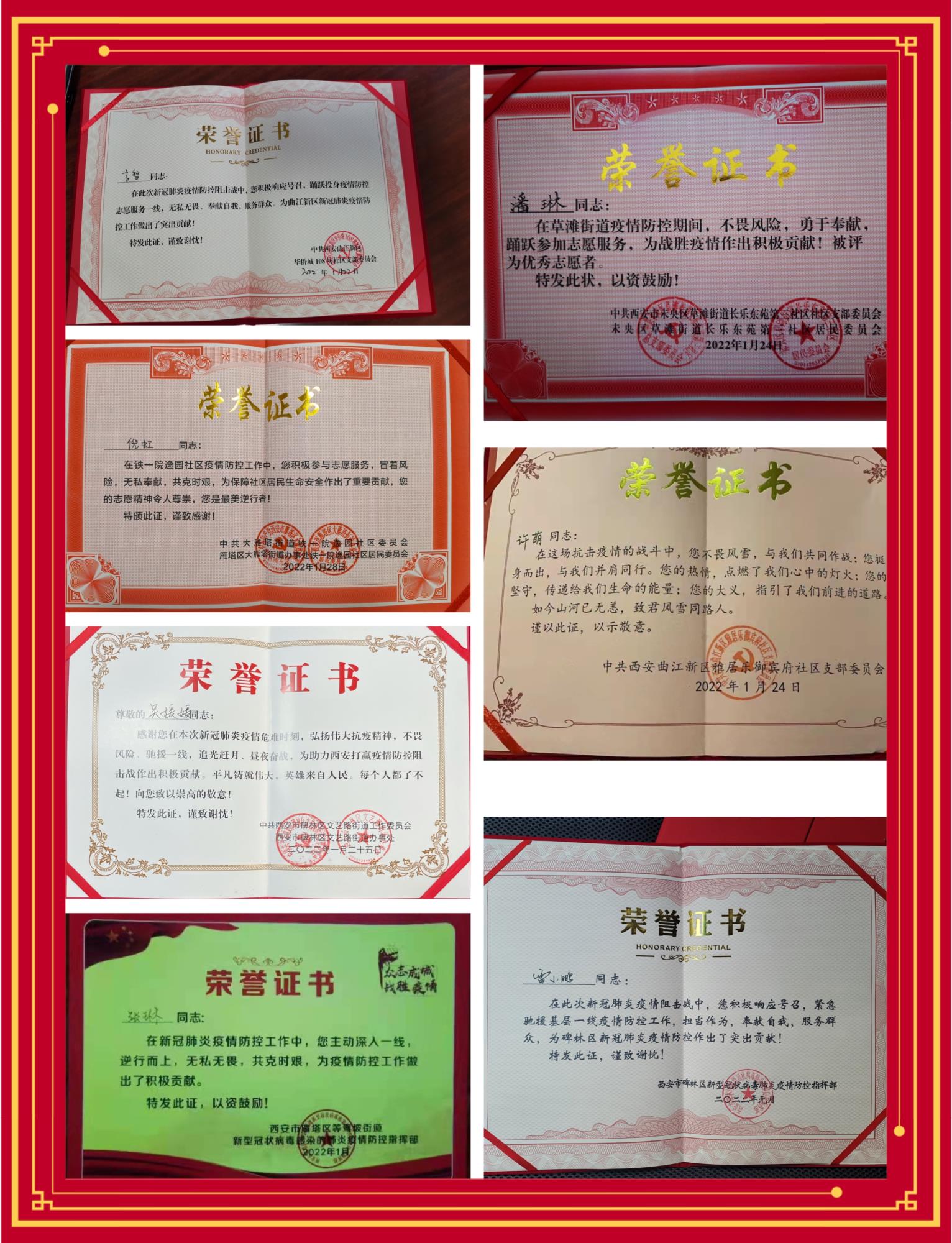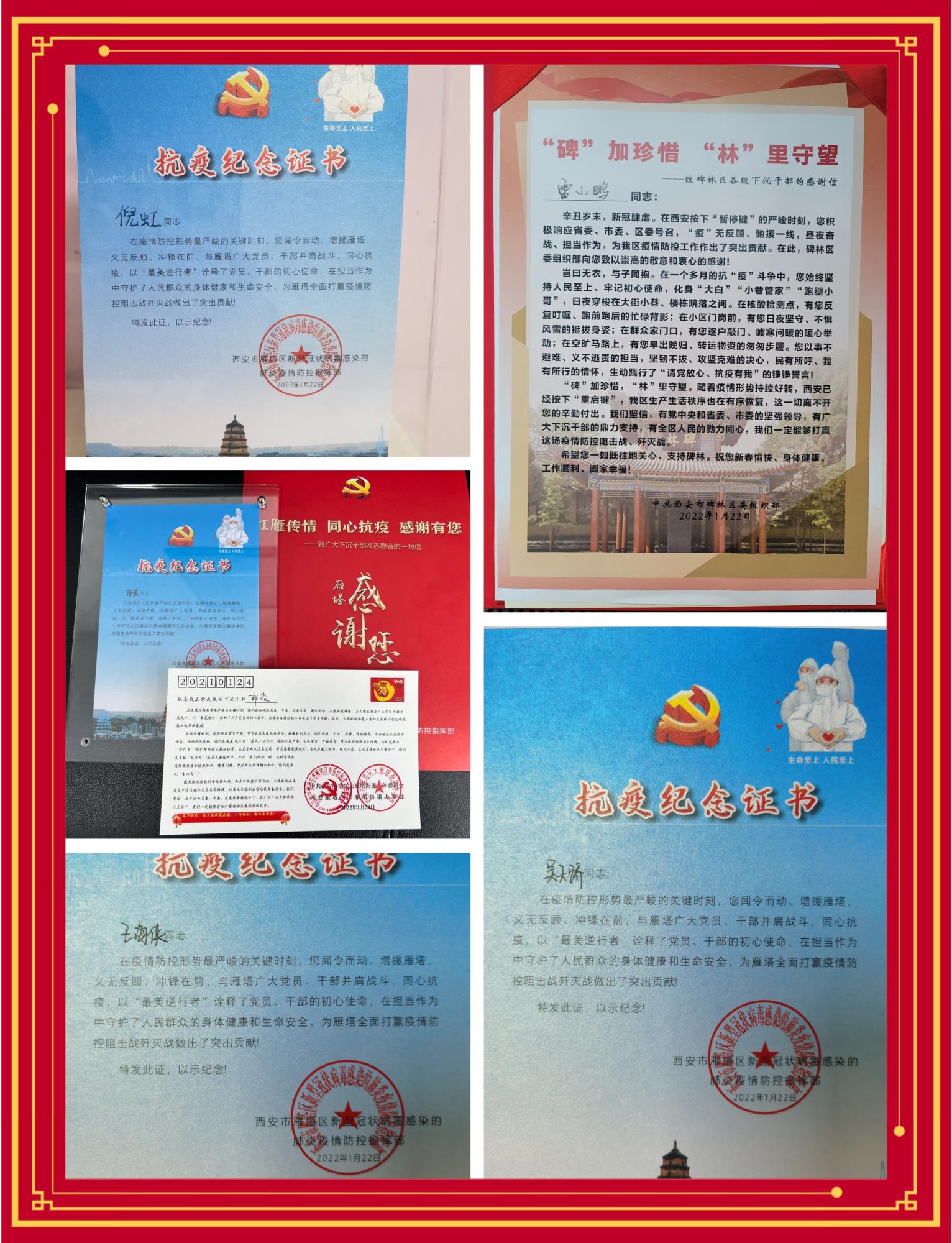 “經(jīng)九南路社區(qū)疫情防控黨員先鋒崗”稱號。此外,支部紀(jì)檢委員劉新偉和公司紀(jì)委委員袁媛在接到命令的的第一時間就向所在社區(qū)進(jìn)行報到,與社區(qū)人員積極配合,協(xié)助開展工作,圓滿完成了疫情防控工作。