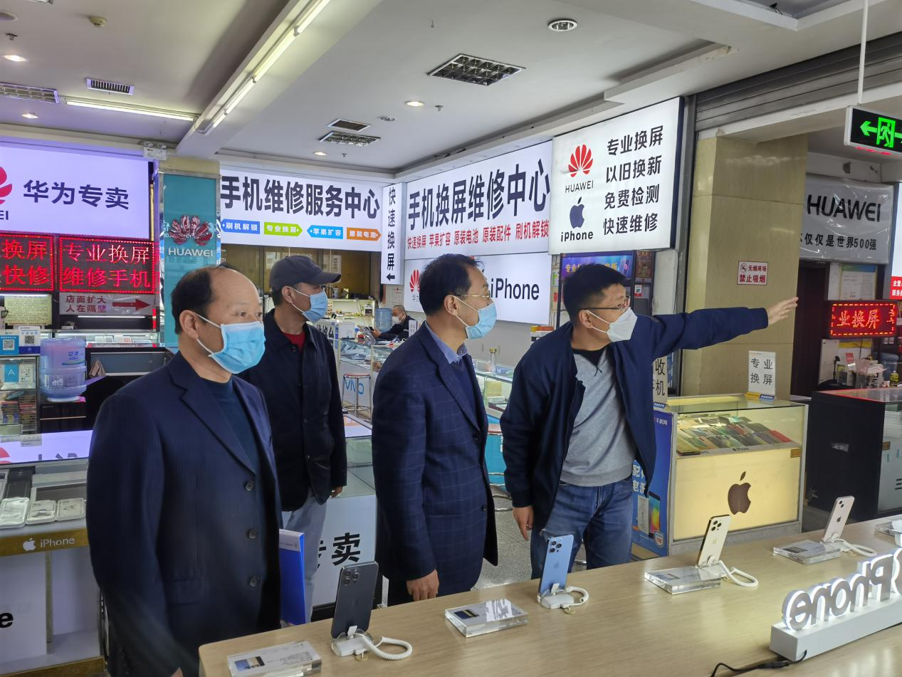 任治忠一行實地走訪了東新科貿(mào)A、B、C三座大樓,詳細查看了門崗執(zhí)勤人員的各項工作流程,現(xiàn)場監(jiān)督檢查了對進入市場人員測體溫、掃碼、規(guī)范佩戴口罩、出入登記等項制度要求是否執(zhí)行到位,防疫物資是否配備齊全。隨后任治忠一行查看了疫情防控有關資料,東新科貿(mào)黨政主要負責人、副總經(jīng)理分別匯報了相關疫情防控工作情況。