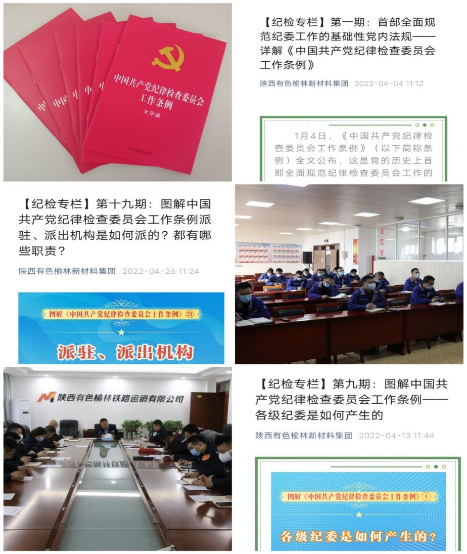 為落實(shí)陜西有色金屬集團(tuán)紀(jì)委關(guān)于學(xué)習(xí)宣傳貫徹《中國(guó)共產(chǎn)黨紀(jì)律檢查委員會(huì)工作條例》(下稱《條例》)的要求,榆林新材料集團(tuán)紀(jì)委全面安排部署,堅(jiān)持橫向到邊、縱向到底的工作舉措,在全公司范圍內(nèi)掀起學(xué)習(xí)貫徹《條例》熱潮。