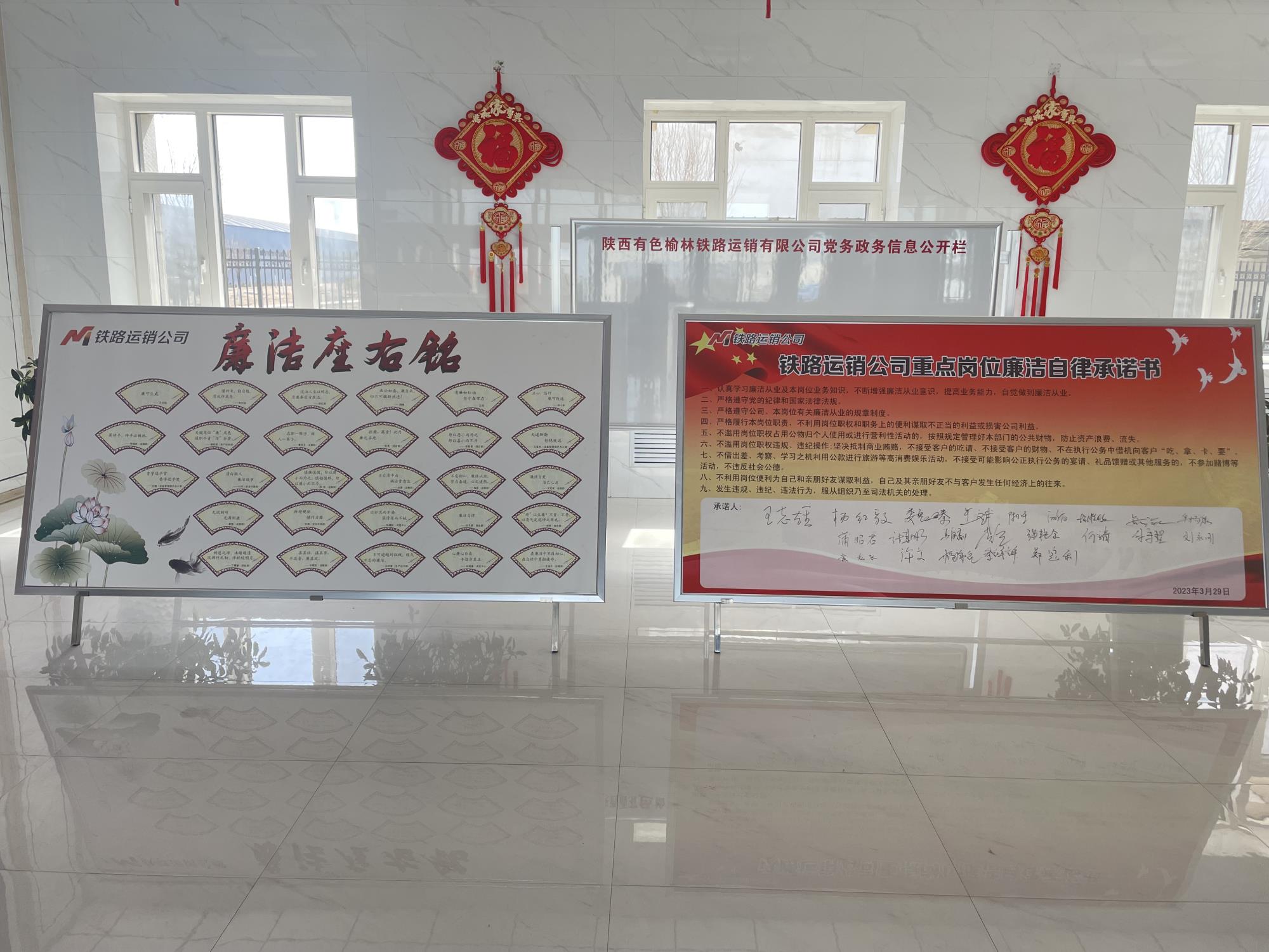 鐵路運(yùn)銷(xiāo)公司充分利用辦公樓、生產(chǎn)區(qū)域等地,打造廉潔清風(fēng)碑、廉潔文化宣傳欄、廉潔文化長(zhǎng)廊、廉潔文化墻4處廉潔文化陣地。其中廉潔文化長(zhǎng)廊,以榆林新材料集團(tuán)廉潔文化核心理念“正心全鏈潔、篤行廉致遠(yuǎn)”為主題,涵蓋公司廉潔文化建設(shè)目標(biāo)、管理理念、廉潔文化落地等11項(xiàng)內(nèi)容;廉潔文化墻以“學(xué)習(xí)教育”為主題,內(nèi)容涵蓋兩袖清風(fēng)、不徇私情等8項(xiàng)內(nèi)容。通過(guò)廉潔文化陣地建設(shè),不斷筑牢黨員干部拒腐防變的思想防線,真正做到將廉潔理念、廉潔文化融入日常,引導(dǎo)黨員干部夯實(shí)廉潔從政思想道德根基,營(yíng)造風(fēng)清氣正的良好工作氛圍。